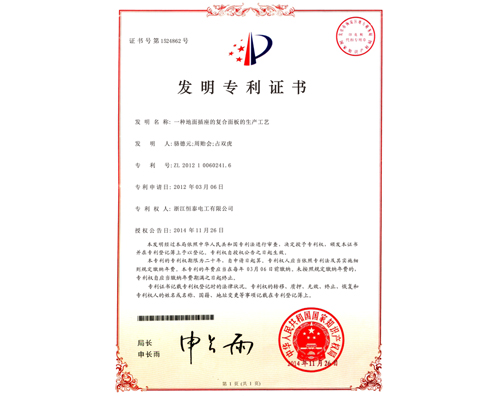 公司前身為1998年成立的浙江恒泰電工有限公司,是地面插座國家標準的主要起草單位,同時公司也是桌面插座行業標準的主要起草單位。公司是行業內率先同時通過1S09001質量管理體系、1S014001環境管理體系和OHSAS18001職業健康安全管理體系認證的單位,為產品的可靠性和高品質提供了強有力的保障。公司擁有有效發明、實用新型、外觀設計等專利100多項,率先推出的阻尼、易拆等結構,一直是行業典范,被眾多廠商和消費者推崇。